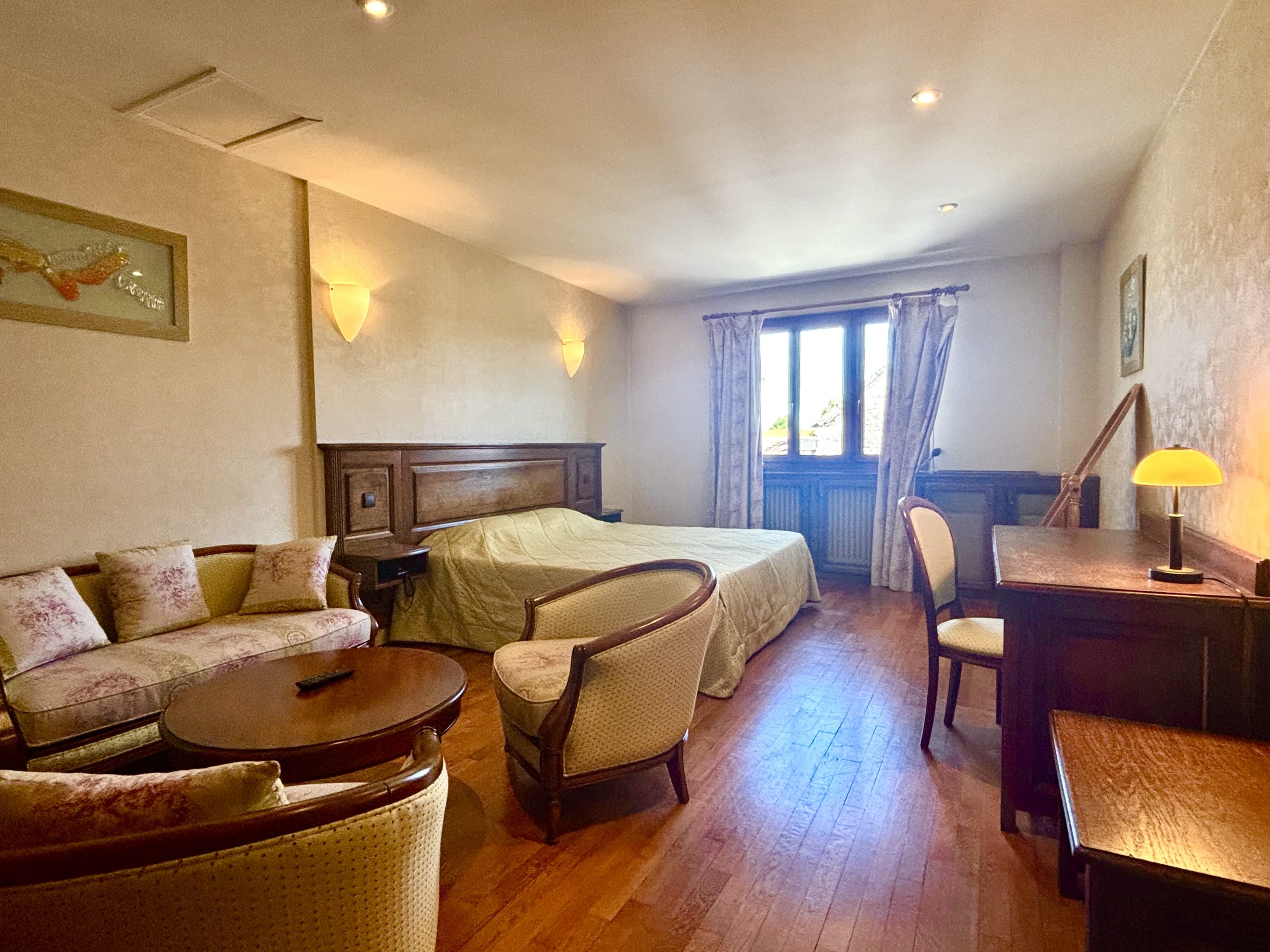 La Chambertin, d’une superficie de 50m², aux tons neutres et élégants, dispose d’une jolie terrasse donnant sur les toits avec vue sur notre jardin paysager. Toutes nos chambres sont équipées de la climatisation et du wifi.